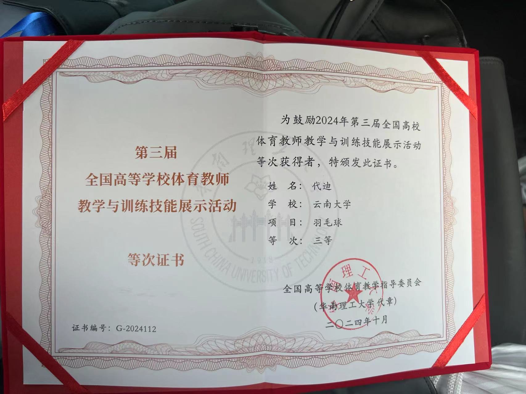 必赢网络游戏平台教师宣红波、代迪参加第三届全国高校体育教师教学与训练技能展示活动并获优异成绩