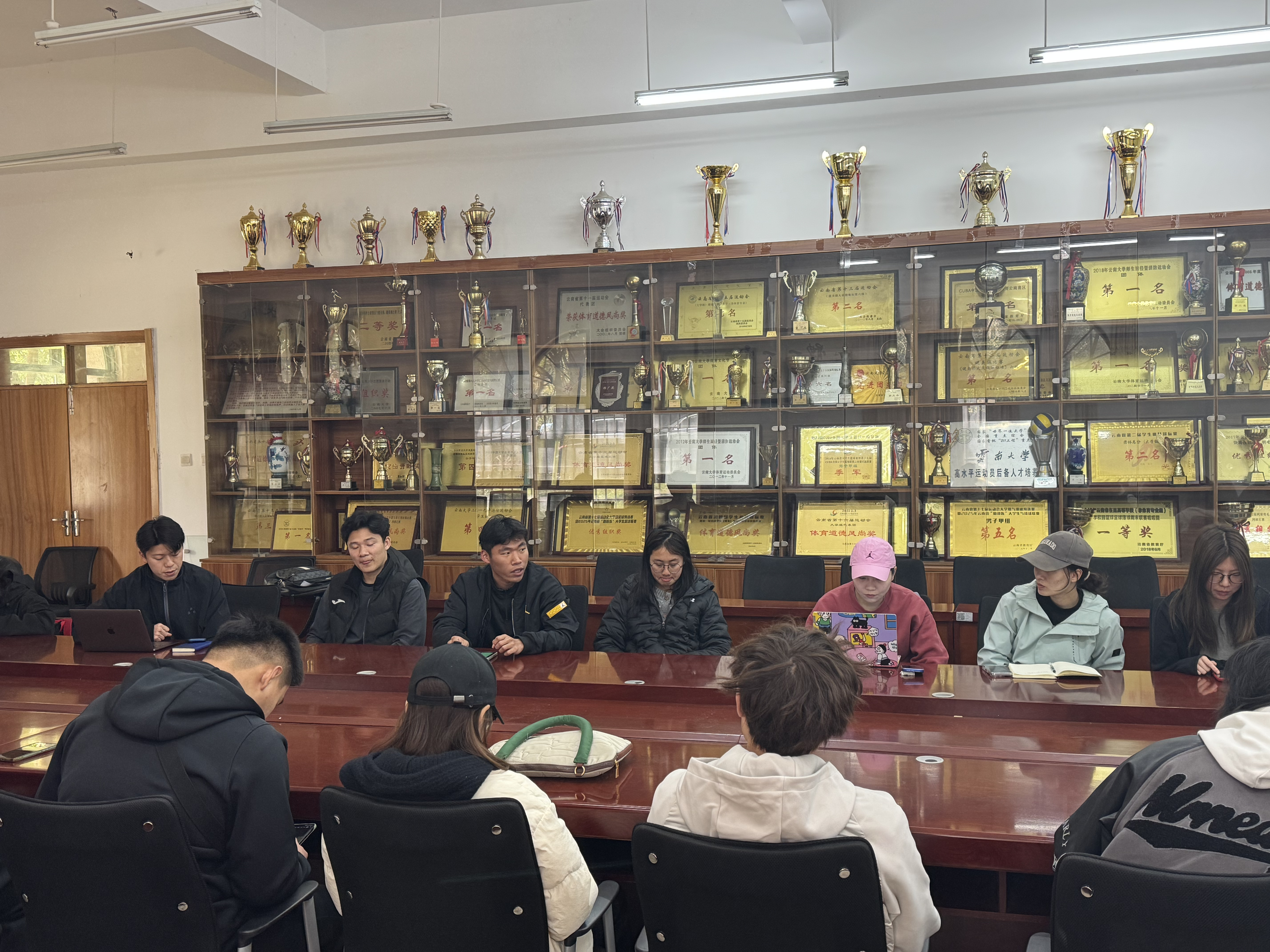 首先进行“第一议题”学习,深入领会2026年全国两会精神,重点研读政府工作报告中关于教育、科技、体育、青年的重要论述,进一步筑牢思想根基。在随后的工作交流环节,各部门负责人依次汇报了新学期的工作计划及当前面临的困难,与会人员围绕相关问题进行了深入研讨。