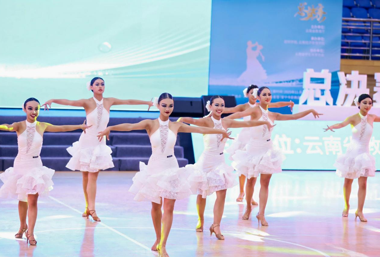 2025年11月28日至30日,由云南省教育厅主办的2025年云南省“勤锻炼”校园体育舞蹈联赛总决赛在云南经济管理学院成功举办。来自云南省16个州市、209个参赛单位的2500余名运动员齐聚赛场,展开激烈角逐。必赢网络游戏平台体育舞蹈队共派出14名运动员代表,她们在赛场上不畏强手,稳定发挥,凭借精湛的技术水平和昂扬的斗志,在多个组别和项目中绽放光彩。